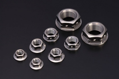 フランジ六角ナット(チタン) 材質:チタニウム スマートフォンでは横スクロールできます。 品番寸法税別価格パッケージ TNU06M6 P:1.01,300円/1個2個パック TNU08M8 P:1.251,950円/1個2個パック TNU10HM10 P:1.25 ワイアリング穴つき3,640円/1個1個パック TNU18HM18 P:1.5 アクスル用(ワイアリング穴つき)9,100円/1個1個パック
